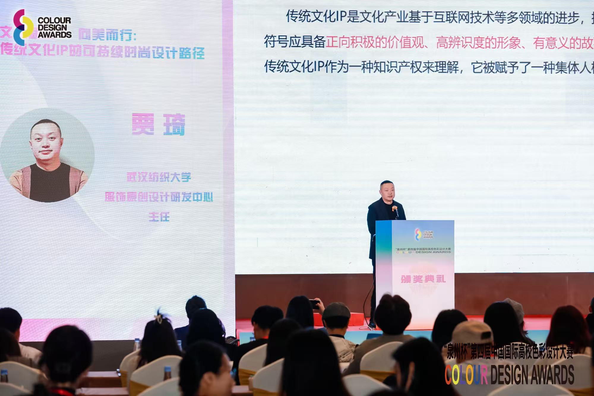 在学术分享环节,贾琦教授系统梳理了传统文化IP的定义与核心范畴,结合自身实践案例,深入浅出地拆解了传统文化IP的创新性提炼方法与产业应用路径。他重点聚焦泉州传统文化IP的独特精神内核与地域魅力,以指导学生参赛的优秀作品为具象案例,将理论与实践深度结合,呈现了一场兼具学术深度与实践价值的视听盛宴,为传统文化IP与产业融合提供了新思路。