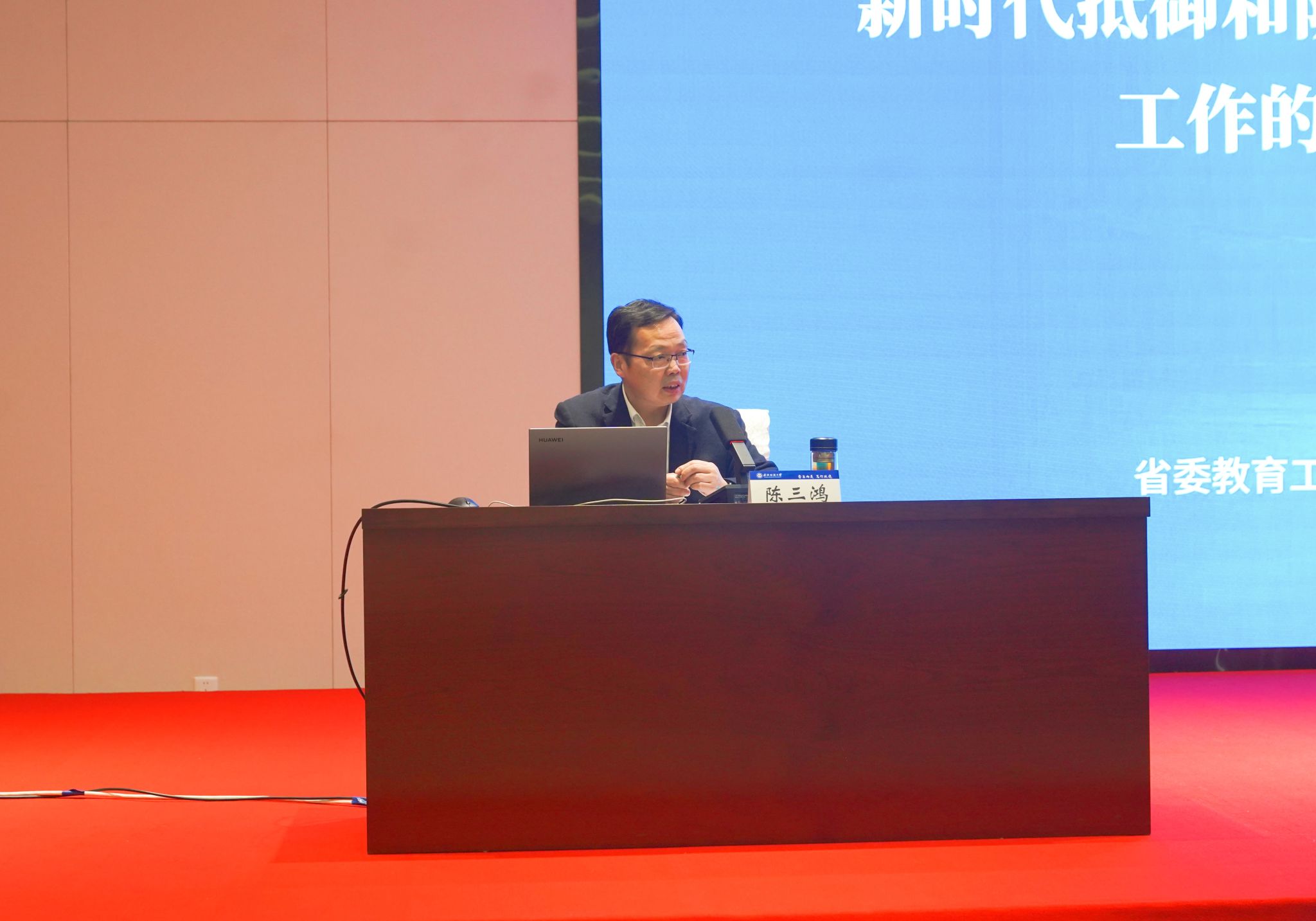 培训会上,陈三鸿处长结合自身深耕高校统一战线和民族宗教工作的丰富经验,带来了一场针对性、指导性、实用性极强的专题报告。他从新时代党的民族宗教工作的根本遵循,当前宗教向高校渗透的形势与挑战,抵御和防范宗教向高校渗透的使命责任、方法要求、组织领导等多个维度,系统阐释了新时代抵御和防范宗教向高校渗透工作的核心要义、总体目标和实践路径,对高校民族宗教工作的重点难点、政策解读、实务操作、方法路径进行了精准剖析。指出,在当前复杂的民族宗教工作形势下,要注意运用法治思维和法治方式。强化教育管理,铸牢思想防线。坚决贯彻党中央关于民族宗教工作的各项方针政策,坚定不移地走中国特色解决民族问题的正确道路;强化阵地管理,阻断渗透渠道。通过加强铸牢中华民族共同体意识教育、开展特色校园文化活动、开展社会实践活动等方式,进一步防范校园传教和抵御宗教渗透;强化精准思政,分类实施教育管理。要注意高校宗教工作策略方法,加强校内管理,健全工作机制,强化底线红线,构建校地协作联动治理,防范化解宗教领域风险。作为多部省级民族宗教相关法规政策文件的修订和起草参与者,陈三鸿还结合全省高校民族宗教工作督查、涉校非法宗教活动排查治理的实际案例,为学校党务干部厘清了工作思路、破解了实操难题,为规范学校民族宗教工作流程、提升工作质效提供了精准指导。