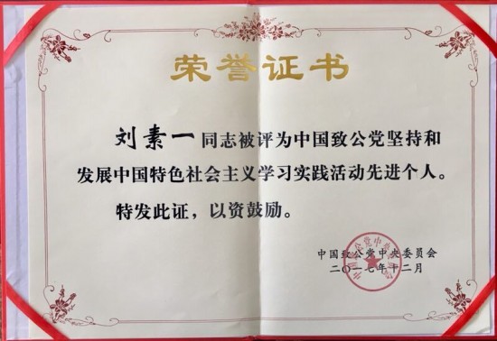刘素一同志这次荣获中国致公党中央委员会的表彰,亦体现了bevictor伟德官网统战部对民主党派的支持和bevictor伟德官网民主党党员自觉接受共产党的领导、积极履行参政党的能力和水平。