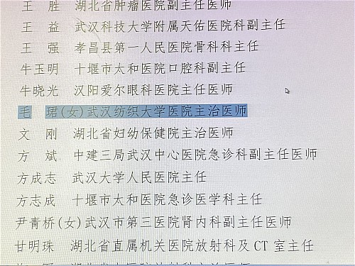 新冠肺炎疫情发生以来,毛珺医生深入抗疫一线,积极投身学校和社区疫情防控工作,作为民主党派的代表,用实际行动诠释了九三学社爱国民主科学精神,为打赢学校、湖北疫情防控阻击战贡献了九三力量。