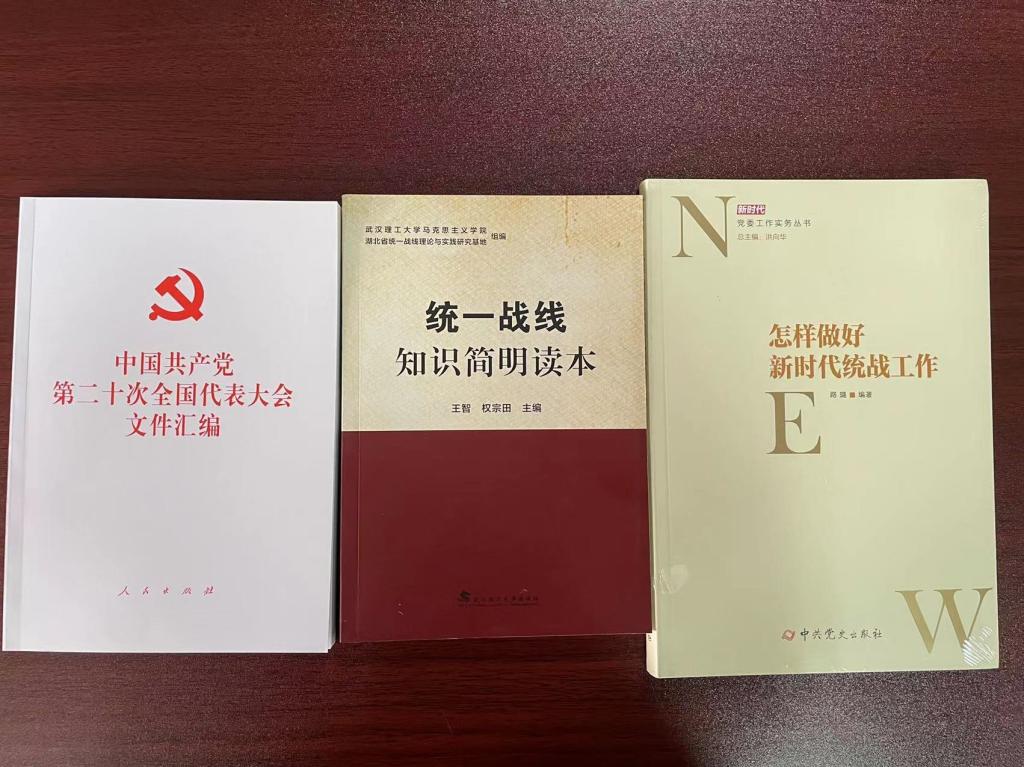 二、思想引领凝聚共识。将统战工作纳入校院两级党委理论学习中心组学习内容,完善党的统战政策学习宣传长效机制。邀请湖北省民族宗教事务委员会二级巡视员段绪光来校作专题辅导报告,邀请中南民族大学中华民族共同体研究院副院长李学保教授围绕“铸牢中华民族共同体意识”作主题报告。向二级党委、各民主党派、统战团体、党外代表人士赠送《中国共产党第二十次全国代表大会文件汇编》、《怎样做好新时代统战工作》等书籍共计200余本,实现学习常态化。