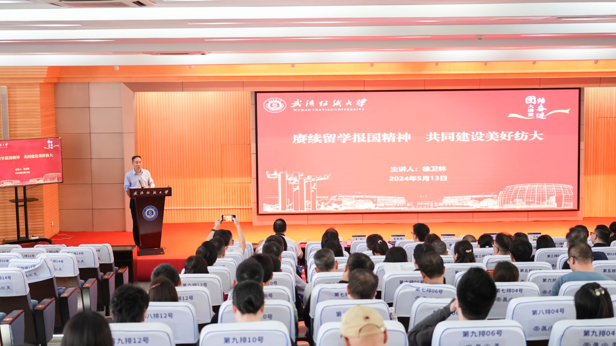 5月13日,bevictor伟德官网第二期“团结·奋进”大讲堂在阳光校区国际报告厅举行。新当选的学校欧美同学会(留学人员联谊会)第二届理事会会长、中国工程院院士、校长徐卫林应邀以《赓续留学报国精神,共同建设美好纺大》为题作专题辅导报告。报告会由校党委副书记黄国辅主持。
