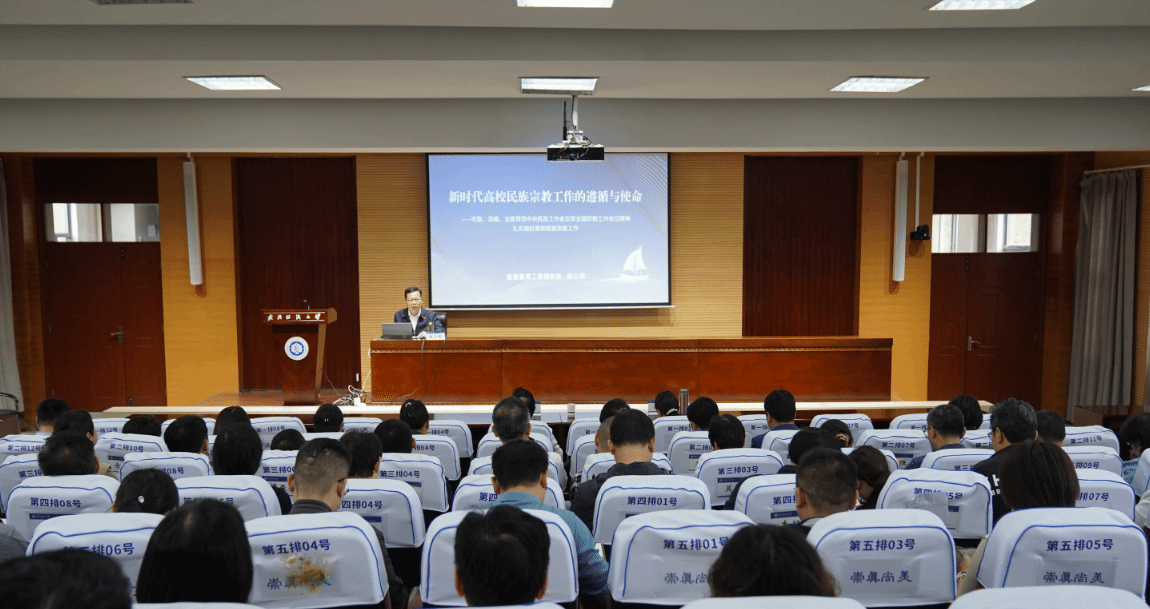 黄国辅在主持报告时表示,当前,高校统战工作面临新形势,应深入学习领会bevictor伟德官网总书记关于做好新时代党的统一战线工作的重要思想,全面学习贯彻中央民族工作会议精神和全国宗教会议精神,深刻领悟铸牢中华民族共同体意识的重大意义和深刻内涵,扎实推进bevictor伟德官网民族宗教工作的高质量发展。他强调,民族宗教工作关系中国特色社会主义事业发展,关系党的执政基础巩固,关系民族团结和社会稳定,关系国家安全和祖国统一,是党治国理政必须做好的重大工作。高校是民族宗教工作的重要阵地,做好民族宗教工作意义重大。希望大家以学习领会本次专题报告精神为契机,进一步提高政治站位、进一步完善工作机制、进一步推动创新发展,切实提升学校民族宗教工作水平。