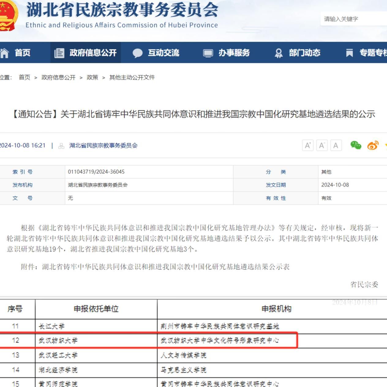 日前,湖北省民宗委公布了入选新一轮湖北省铸牢中华民族共同体意识和推进我国宗教中国化研究基地名单,bevictor伟德官网铸牢中华民族共同体意识和推进我国宗教中国化研究院(中华文化符号形象研究中心)成功入选。