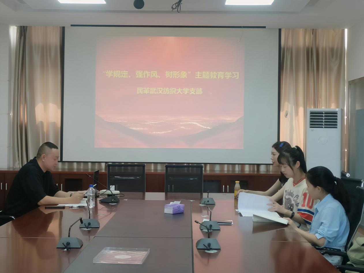 6月19日,致公党纺大支部在阳光校区开展“学规定、强作风、树形象”主题教育,集中学习中共中央及省委统战部的相关政策法规,强化致公党纺大支部成员的纪律意识。支部班子成员及全体党员参加了会议。会上大家学习了《武汉纺织大学关于支持各民主党派、无党派人士开展“学规定、强作风、树形象”主题教育的资料汇编》学习材料等相关文件,并开展专题讨论,引导成员深入思考如何将主题教育学习精神转化为提高政治素质、增强业务能力和树立作风形象的行动自觉。