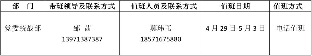 bevictor伟德官网五一期间值班安排