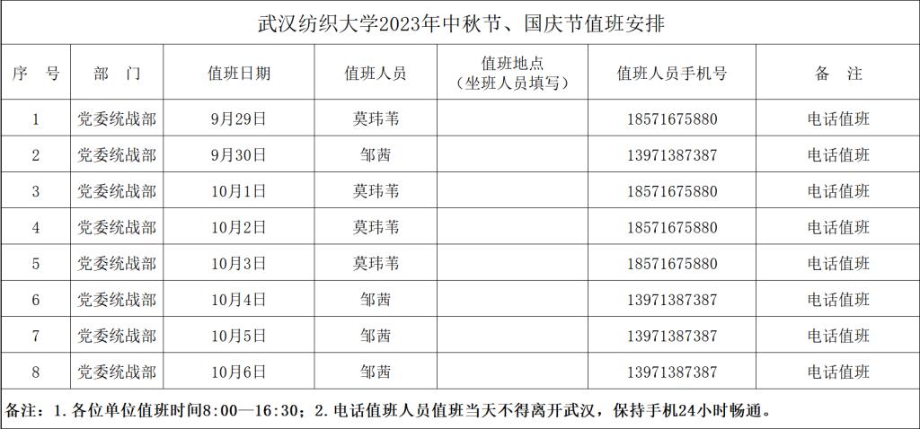 bevictor伟德官网中秋节、国庆节期间值班安排