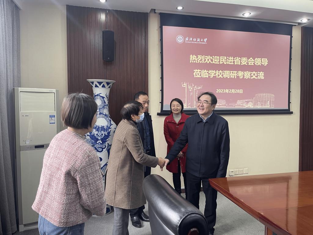 2月28日下午,民进湖北省委会专职副主委周建元一行四人到学校调研工作。学校党委书记田辉玉对周建元一行的到来表示欢迎,校党委副书记黄国辅出席调研座谈。