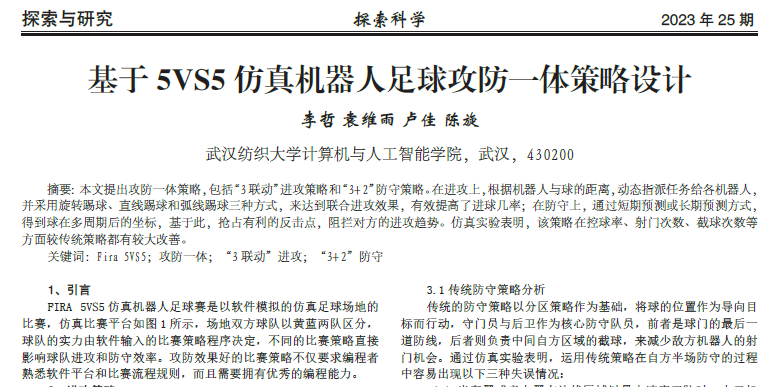 在今年3月准备参赛时,金丽宏认真挑选队员组队进行集训。暑假期间,同学们在学校积极备战比赛,认真研究比赛平台,仔细研读比赛规则和各种策略论文,对足球比赛会出现的各种情况进行一步步的剖析,历经了1000多个小时的策略研究与讨论,尝试了数十种进攻与防守策略方案,最终形成队员自己的策略并实施。团队成员充分发扬合作精神,分工明确、沉着冷静、不惧挑战,最终获得了全国一等奖的好成绩。