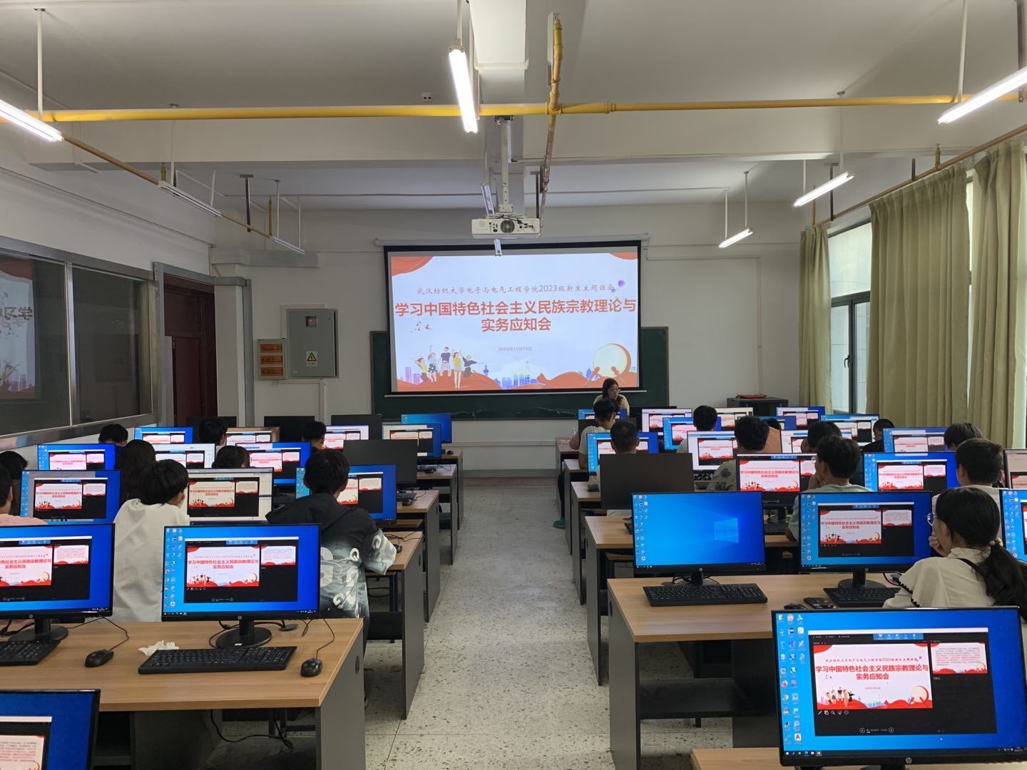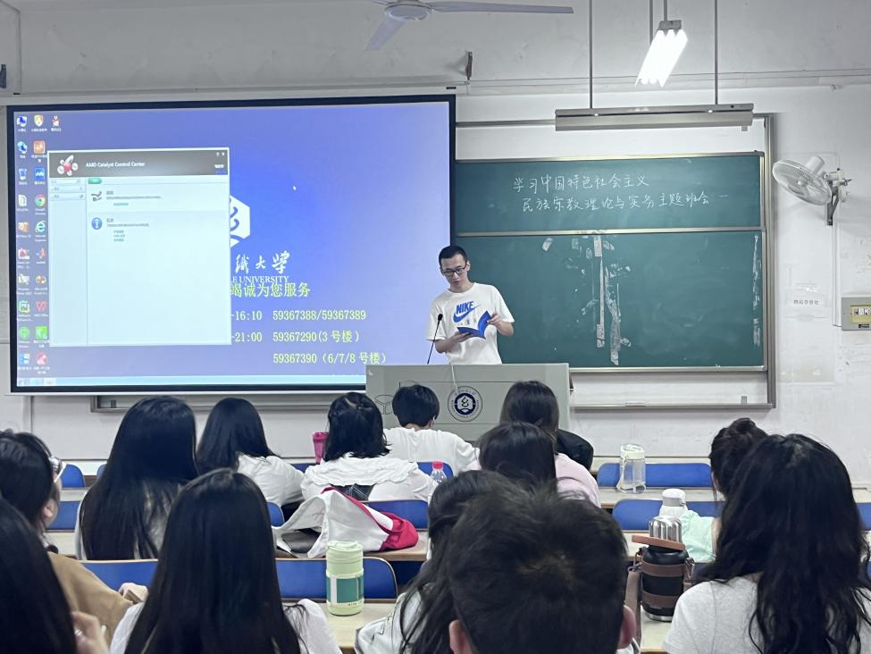 (计算机与人工智能学院2023级新生在3号教学楼107教室召开新生民宗知识学习会)